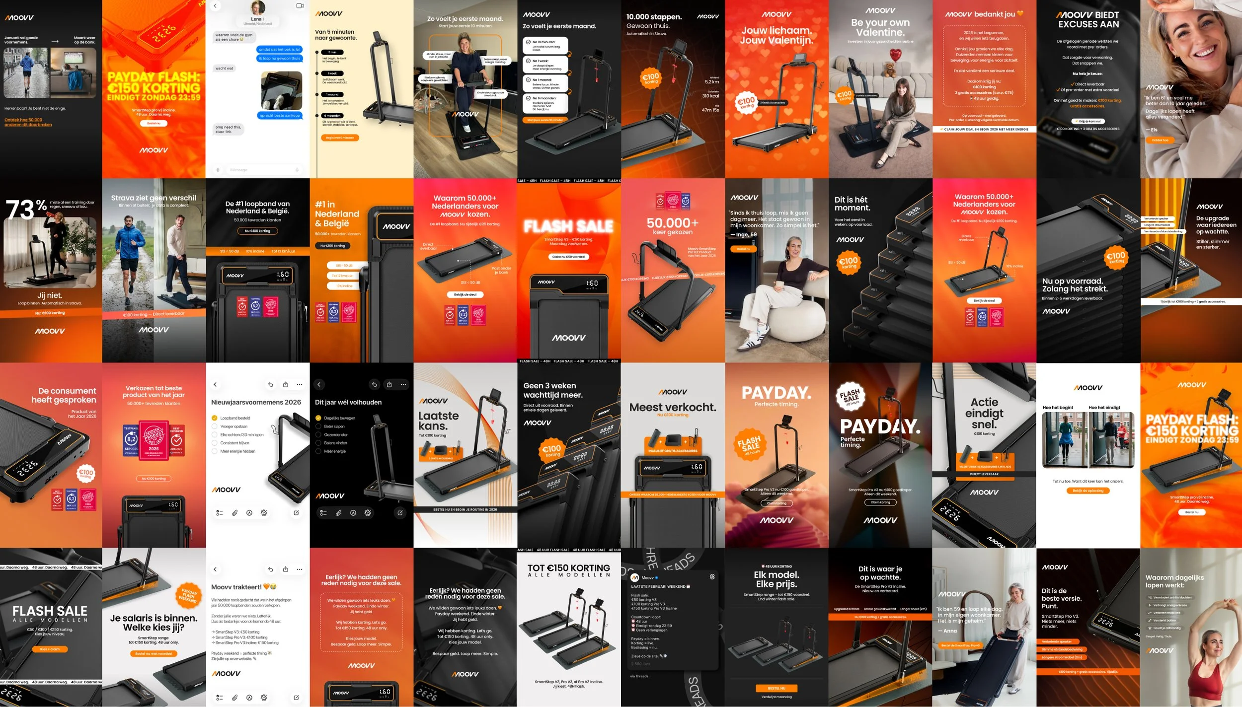 A diverse collection of still assets created for the Performance Marketing team at Moovv. All ads are localized for Dutch, German and Swiss markets.